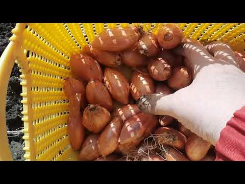 - Подождите, пока луковицы созреют в конце лета, а верхушки растений пожелтеют и опадут, прежде чем собирать лук-шалот. Аккуратно выкопайте или потяните лук-шалот, сохраняя листья прикрепленными.