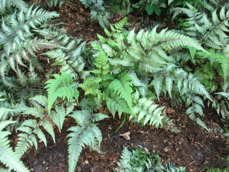 - Кочедыжник ниппонский. Листья папоротника имеют серебристый оттенок. Если растение будут радовать утром лучи солнца, то на листьях появятся фиолетовые прожилки. Не выносит холода, поэтому на зиму растение стоит укрывать.