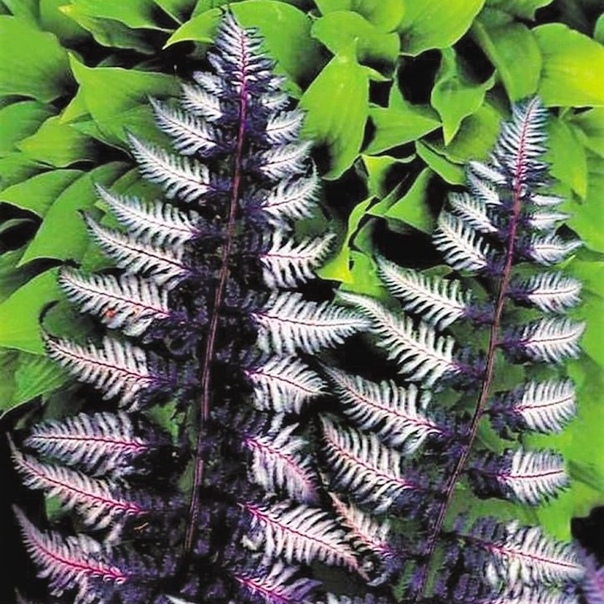 Например, листья Burgundy Lace окрашены в винный тон. Особенно броско эти сорта выглядят осенью.Папоротник кочедыжник