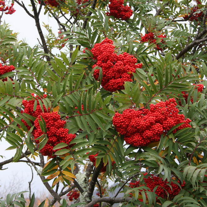 | Рябина также известна как «рябина» из-за сходства морфологии листьев с ясенем и привычки расти высоко в горах. |