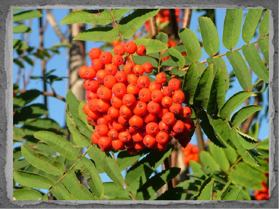 | Фрукты | Плоды рябины — ярко-красные ягоды, которые появляются в конце лета — начале осени. |