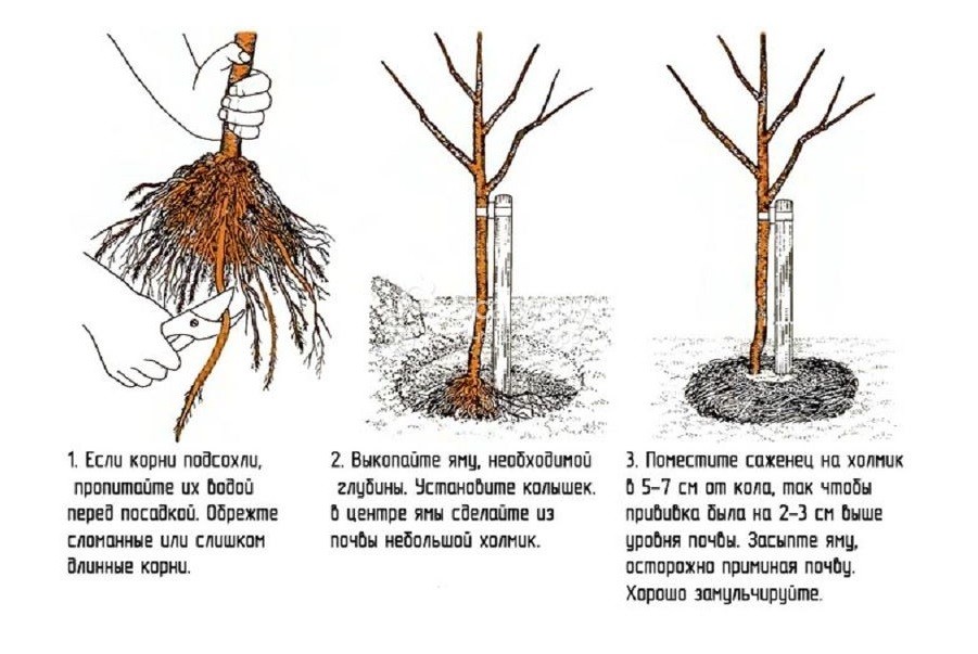 При посадке любого плодового дерева необходимо следовать определенной схеме, которая поможет выполнить процедуру правильно. Помимо самой посадки, важное значение имеет каждый шаг: выбор посадочного материала и места в саду, подготовка ямы.