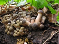 | Clitocybe nebularis — Затуманенная воронка Существует множество грибов-«воронок», из которых это один из самых крупных и распространенных. Специфическое название nebularis связано с облачной окраской шапки. Затуманенные воронки — это лесные грибы. Подробнее … | |