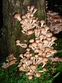 Фото 2. Молодые плодовые тела опёнка осеннего на корнях старого дерева. Автор: Andreas Eichler