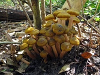| Gymnopilus sapineus — Чешуйчатая ржавчина По размеру похож на Spectacular Rustgill, но без кольца стебля, Scaly Rustgill чаще всего появляется из мертвых пней хвойных деревьев или из заглубленной сосновой древесины в лесной подстилке. Редкий в Северной Европе этот красивый, но несъедобный гриб довольно распространен в Алгарве. Подробнее … | |
