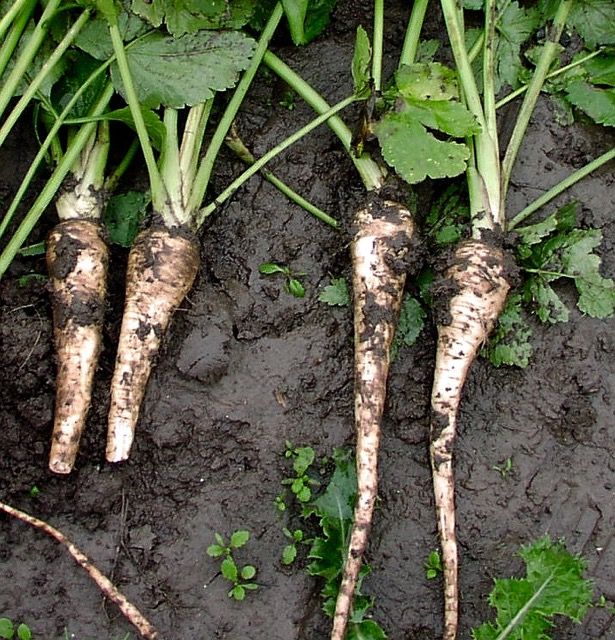 - В теплая осень культура прорастает, и если не успеет прорасти, то станет жесткой и волокнистой. В такую погоду, как только появляются признаки готовности корнеплодов, их выкапывают.