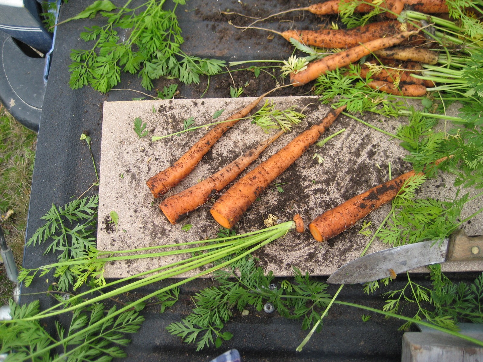- С моркови снимают землю, кладут на грядку сушиться. Нельзя постукивать овощи между собой, стряхивая комья почвы. Корнеплоды повреждаются, после чего быстрее загнивают при хранении.