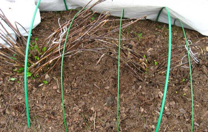 Сверху на деревянный каркас или дуги застилается укрывной материал. Вначале осени его не закрывают с торцов. Полное укрытие со всех сторон выполняют, когда среднесуточная температура устанавливается ниже -5 градусов.