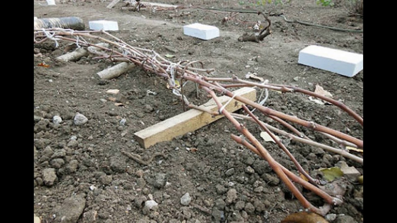 Поскольку Подмосковье — регион довольно суровый, то иногда лозу закапывают в почву. Для этого роют канавки глубиной 10–15 см и шириной 25–30 см. Туда укладывают лозу и засыпают ее свежей почвой.
