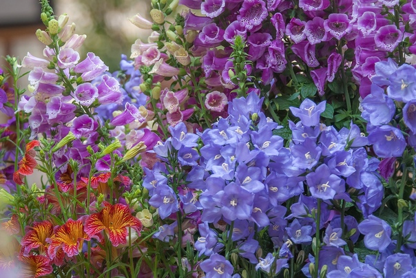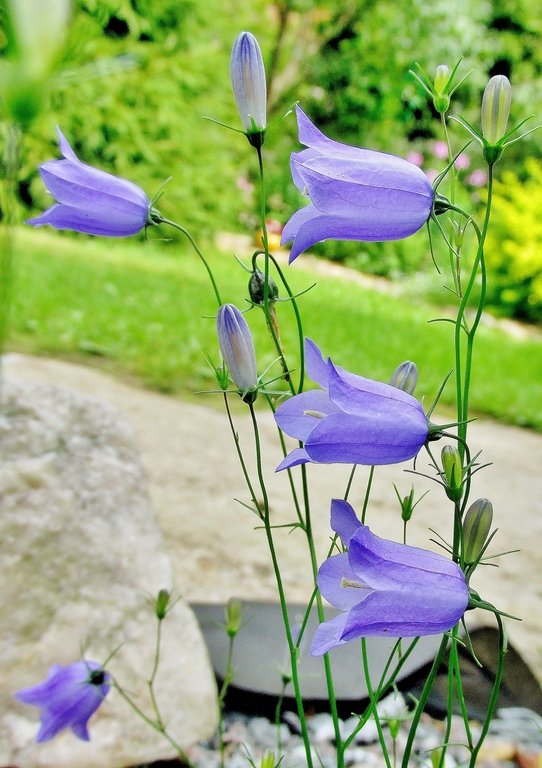 Садовые колокольчики варьируются по размеру: от низкорослых, миниатюрных видов до высокорослых сортов более полутора метра высоту.