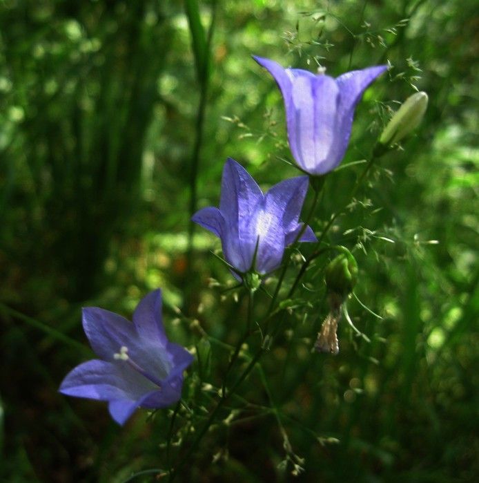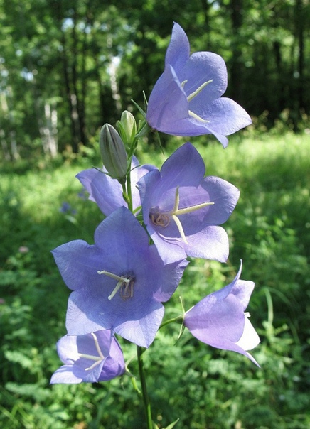 Колокольчик американский любит светлые тона, часто встречается на опушках лесов. Здесь несколько колокольчиков растут в колонии бледных камышей.