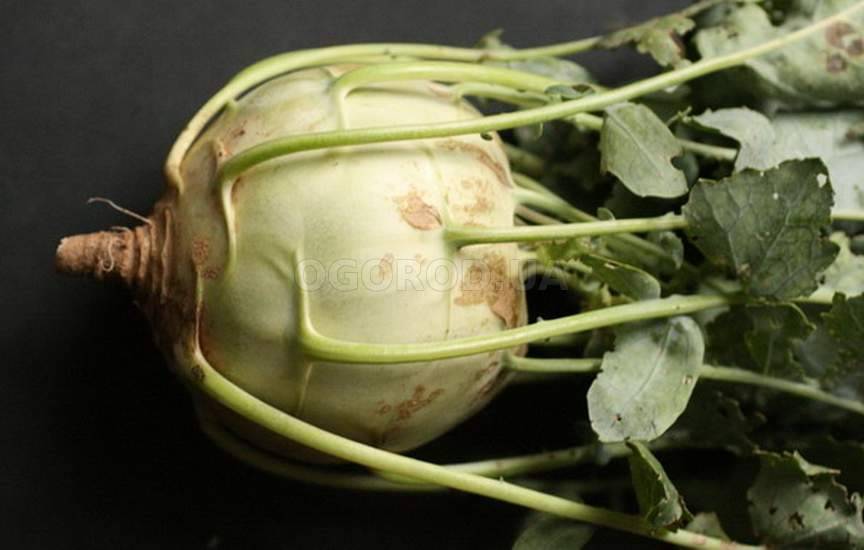 Съедобная часть кольраби – стебель, который в надземной части приобретает шаровидную или реповидную форму.