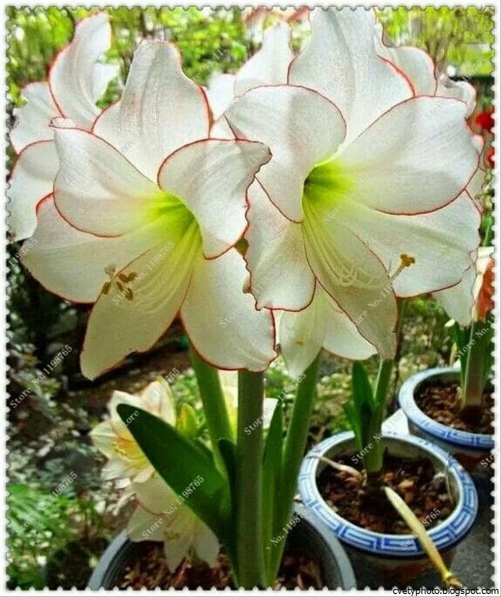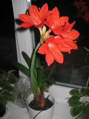 Цветонос, в отличие от упомянутого выше гиппеаструма, внутри является полым. Цветки имеют воронкообразное строение. Превалируют красные оттенки с белоснежными включениями.