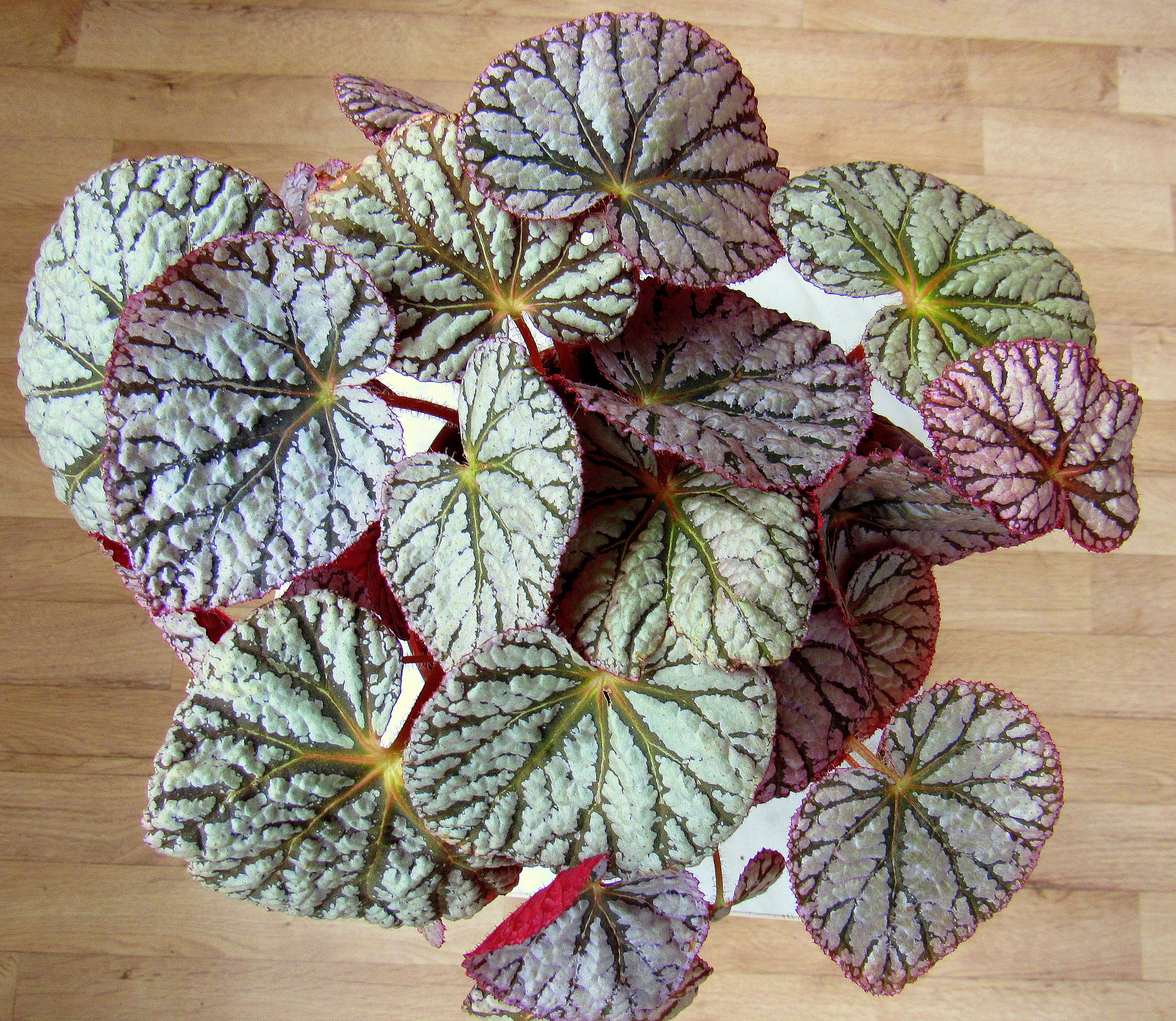 Листовой сорт родом из Индии считается одним из самых красивых среди всех сотен и тысяч разновидностей. Все дело в эффектных листьях необычного окраса: малинового, бронзового, фиолетово-алого. Их размер достигает 20х30 см.