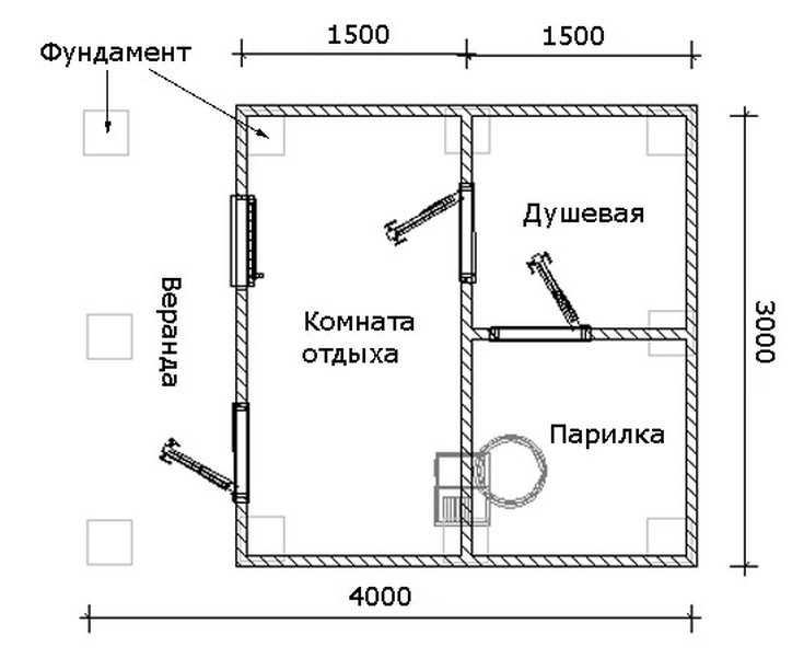 Приводим приблизительные габариты бани, предназначенной для одновременного ее посещения двумя – тремя людьми: