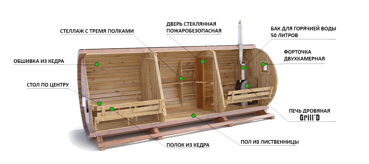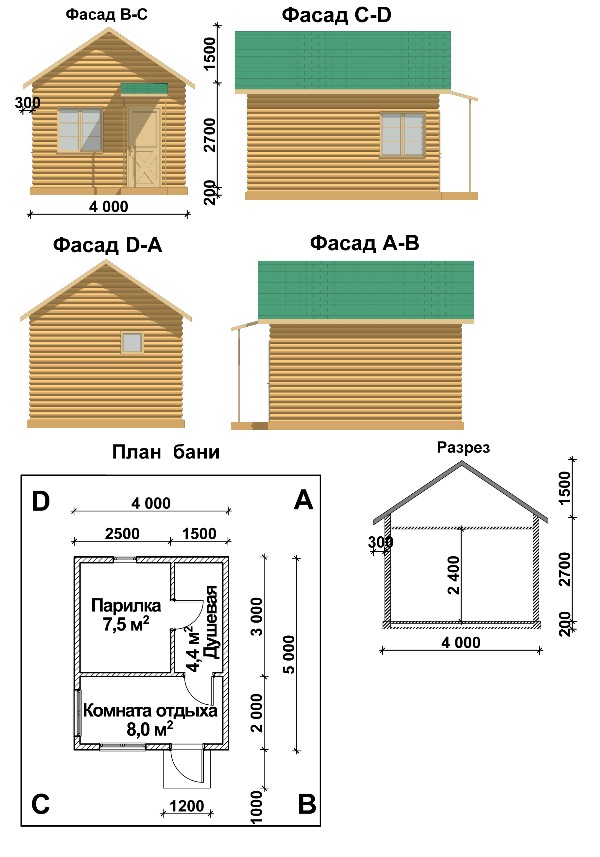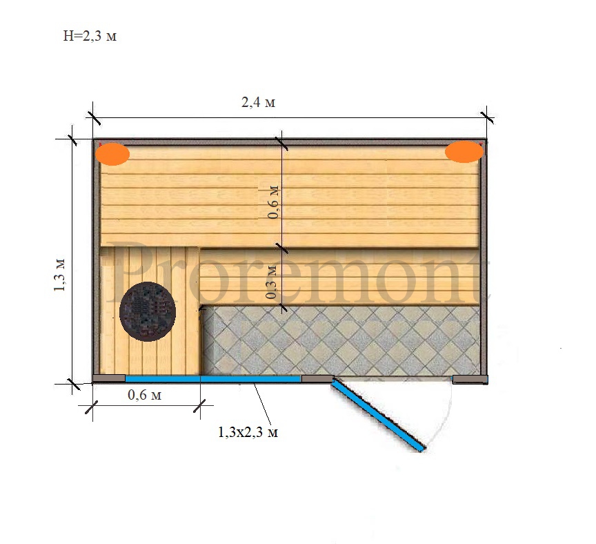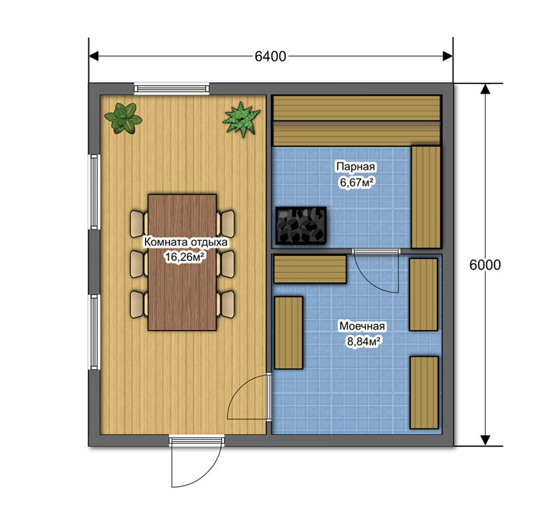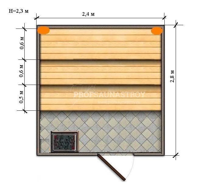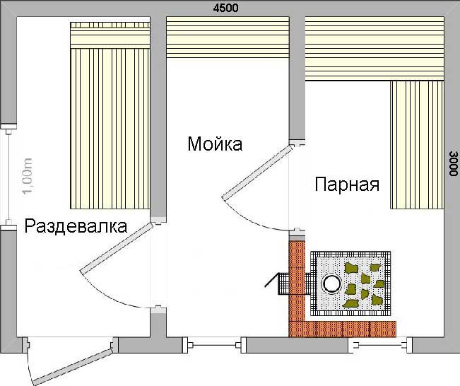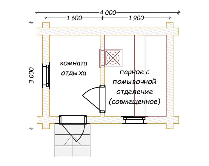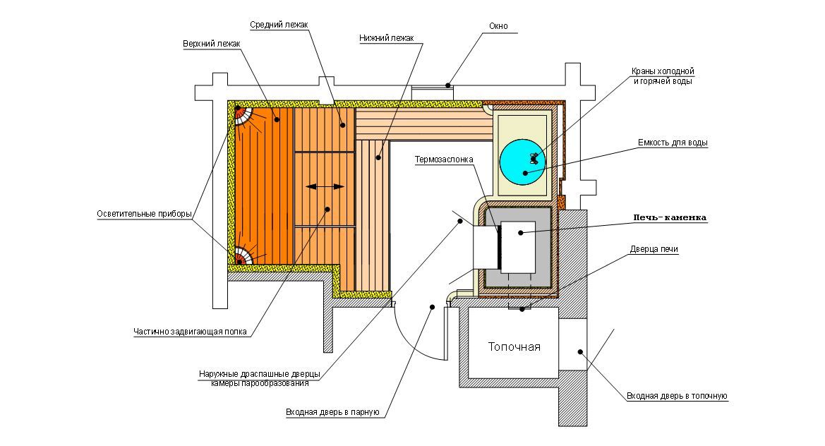 Размеры данного помещения могут быть разными – здесь все зависит от того количества людей, на какое она рассчитывается. А также от выбранного типа печи-каменки.