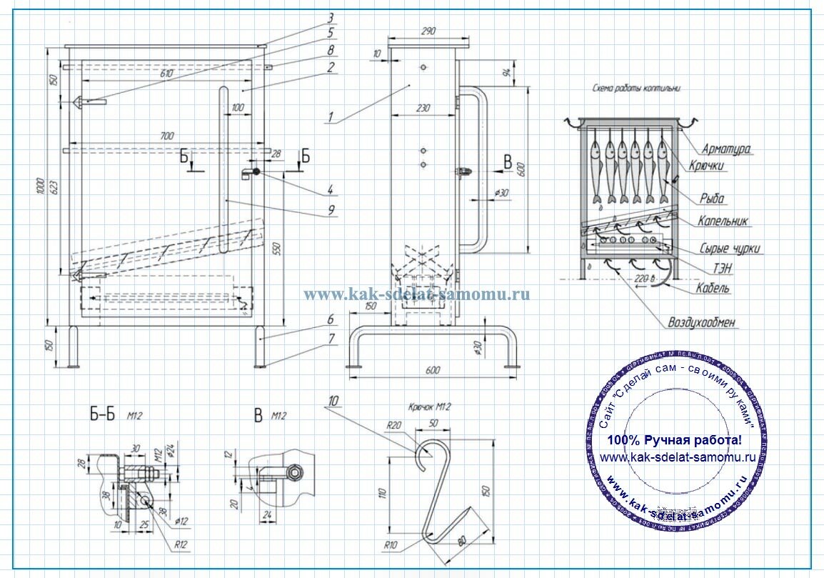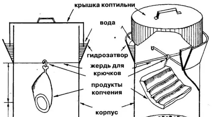 Коптильня с гидрозатвором — конструктив, чертежи для изготовления своими руками