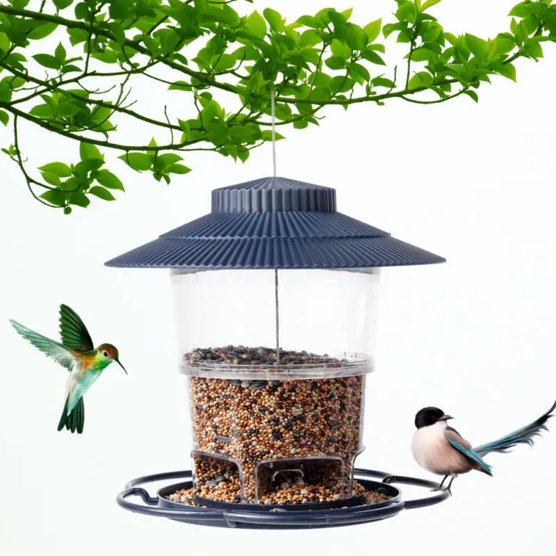 Это хорошая кормушка для мелких птиц, но в ней по-прежнему много еды. В отличие от лотковых кормушек, перечисленных выше, эта кормушка содержит корм в отсеке, который фильтруется в лотки для семян внизу, когда птицы едят то, что доступно.