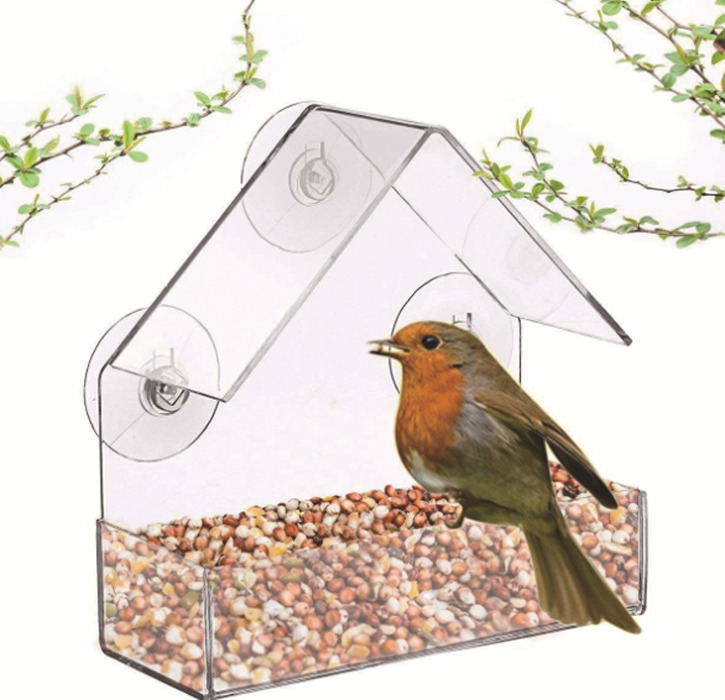 Кормушка для птичек на стекло окна с присосками ,прозрачная декоративная