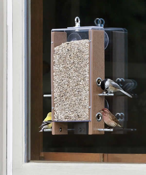 Многие из этих кормушек для птиц сконструированы из материалов, через которые легко видеть, но если смотреть в окно без дополнительных материалов, то лучше всего. Это уменьшает потребность в уборке и может помочь вам получить более четкие фотографии, если это вас интересует.