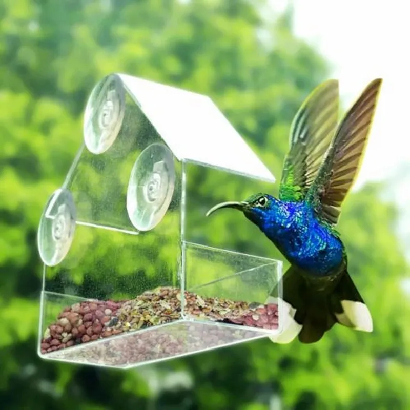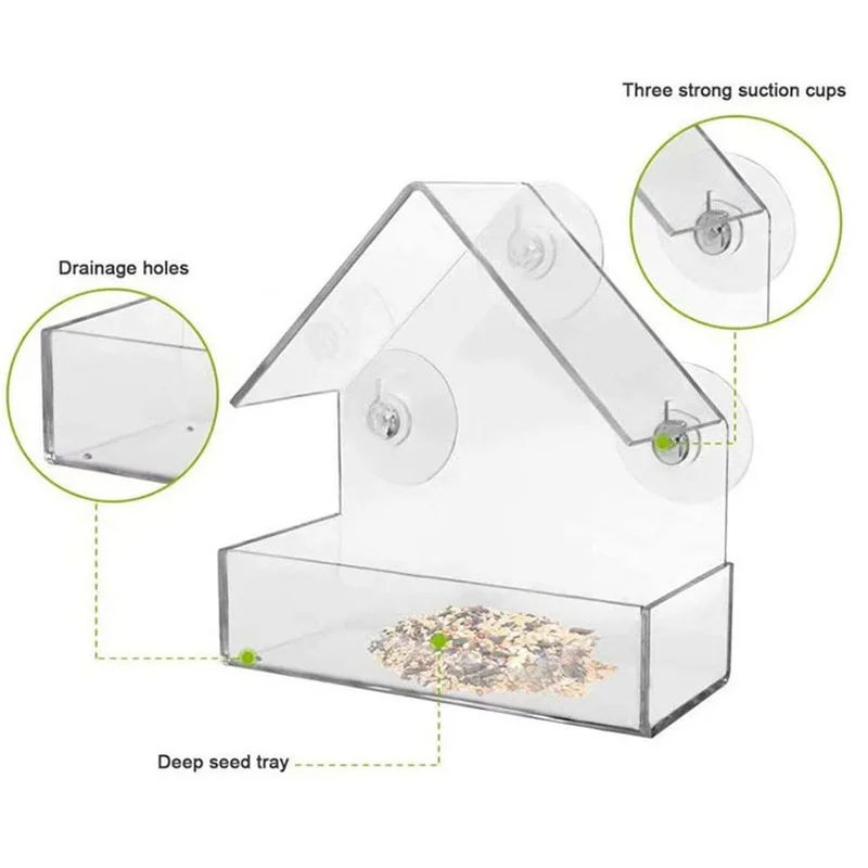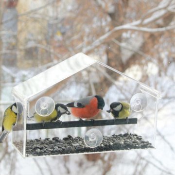 Кормушка для птичек на стекло окна с присосками ,прозрачная декоративная