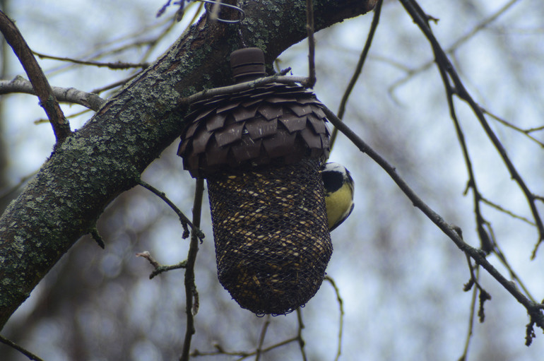 - Сразу много кормушек вешать не стоит, можно повесить одну, но при этом легко доступную.