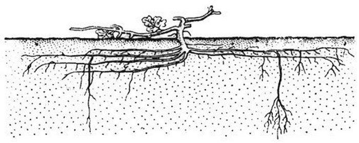 Глубина корня зависит от погодных условий и состояния почвы. При устойчивой сухой погоде корни проникают глубже, а при влажной – находятся ближе к поверхности, всего на расстоянии 8-10 см.