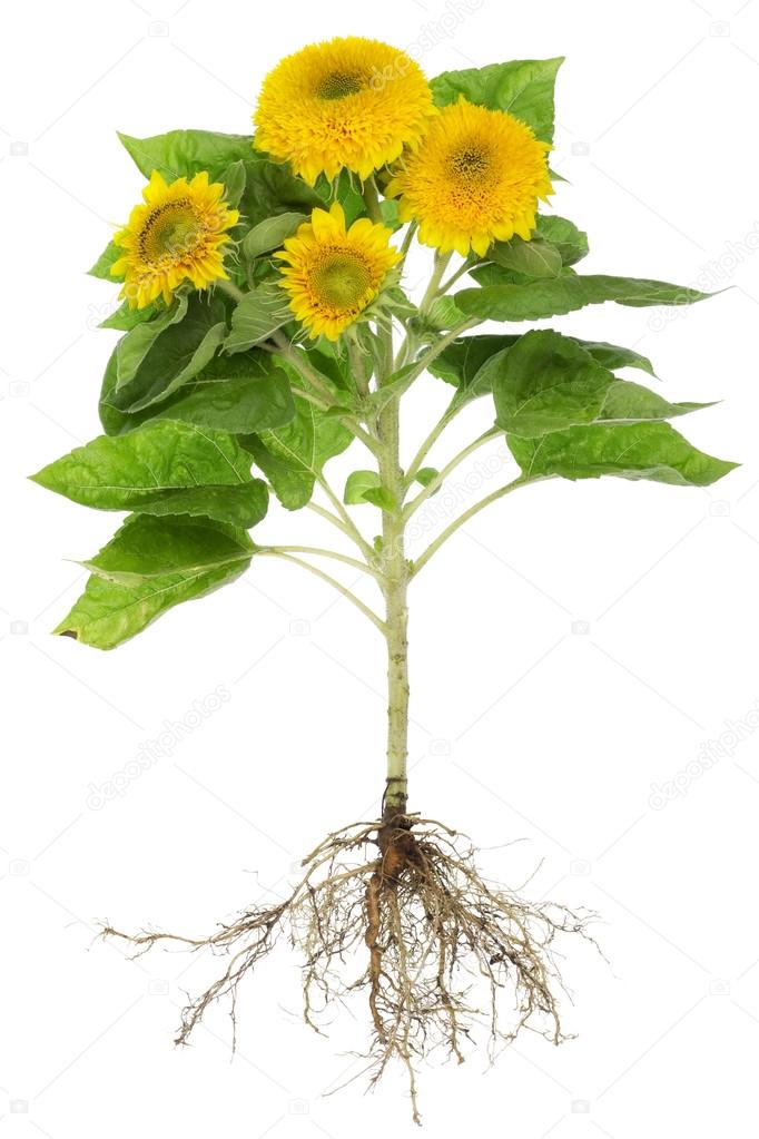 Корневая система подсолнечника развивается из первичного зародышевого корешка и уходит вертикально в глубину до 3 и более метров. Такое строение корневой системы дает растению возможность выдерживать засуху. Корневая система подсолнечника имеет большое количество вторичных корней и корешков. Часть боковых корней располагается почти параллельно поверхности почвы, а на расстоянии 20-40 см от головного корня углубляется и идет параллельно ему.