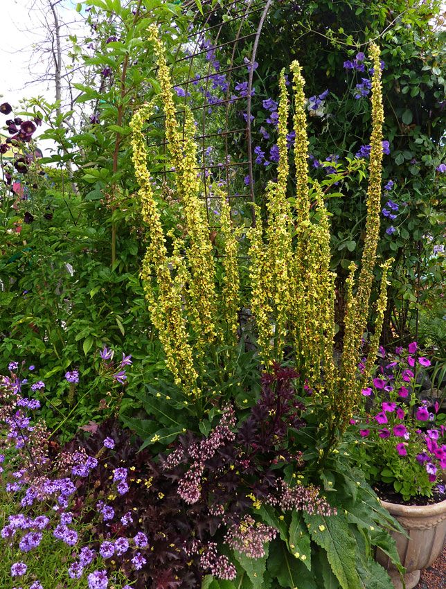 Коровяк царский скипетр, выращивание которого не составляет труда, обладает большим количеством полезных свойств. Помимо лечебного эффекта, композиция вербаскума в сочетании с сальвией, станет настоящим украшением клумбы.