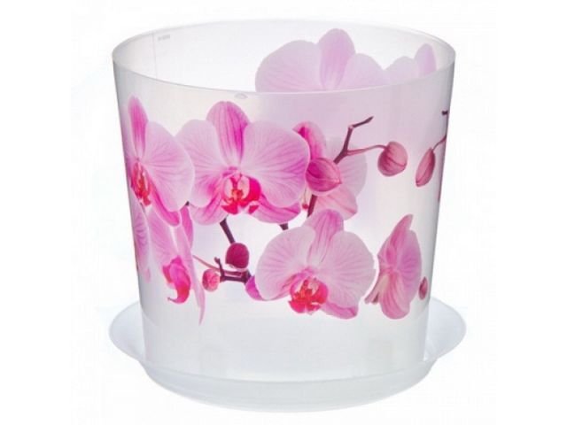 Кашпо Орхидея d180мм 3л с поддоном розовый прозрачный м 3051