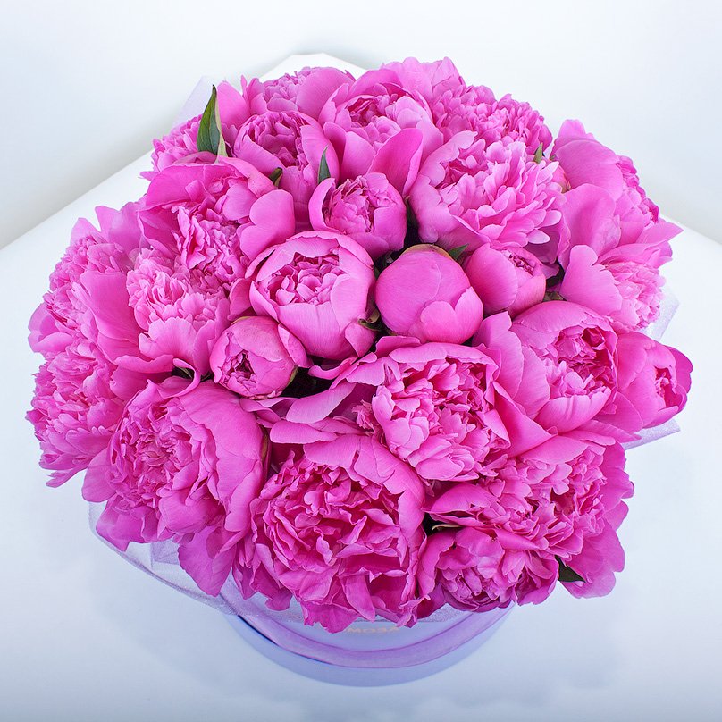 Композиции из пионовТакже очень популярны букеты из пионов в разнообразных шляпных коробках либо в плетёных корзинках. Такие букеты особенно удобно транспортировать либо дарить на мероприятия, которые будут проходить вне дома.