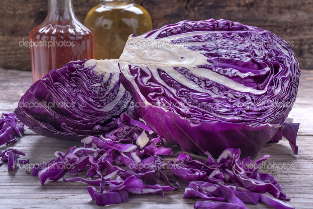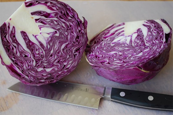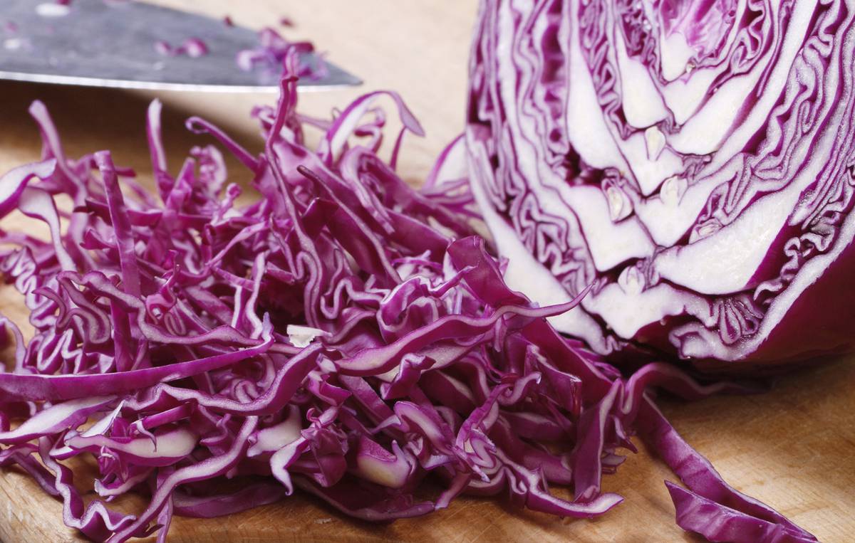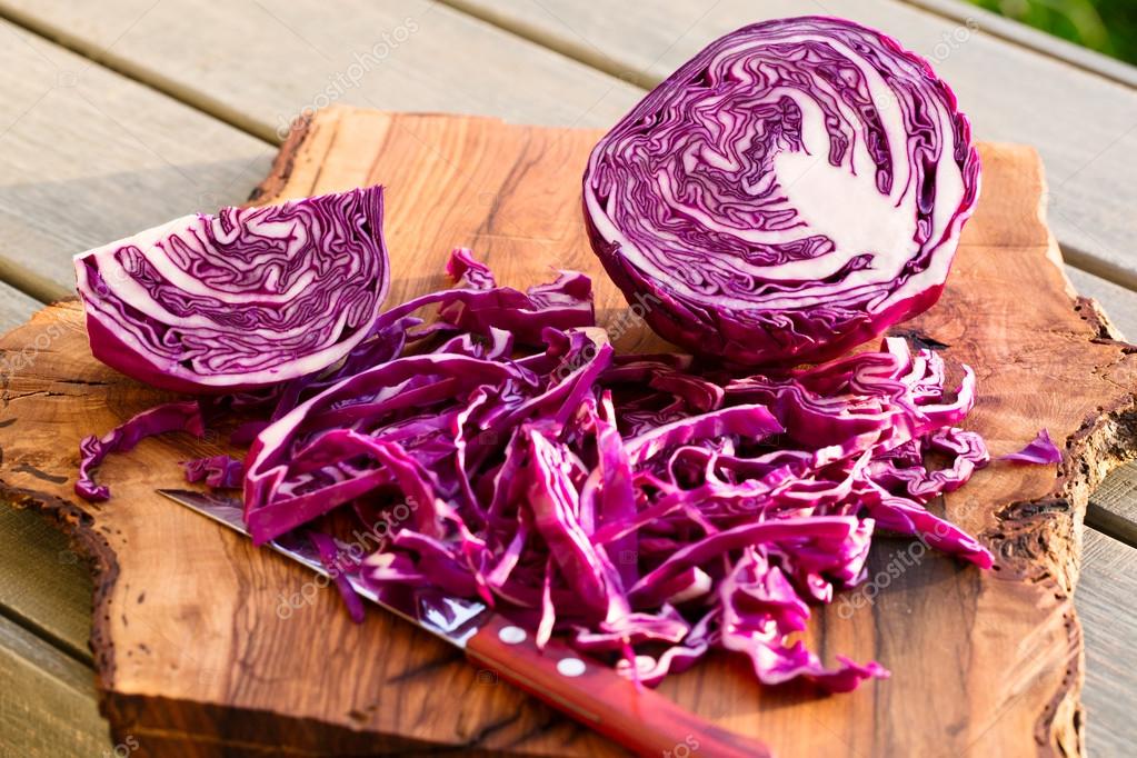 «Краснокочанная капуста богата железом, минеральными веществами, антоцианами (вторичное растительное вещество/ растительный пигмент/ поглотитель радикалов/ укрепляющее стредство иммуной системы/ противовоспалительное средство), сахаром и горчичными маслами.