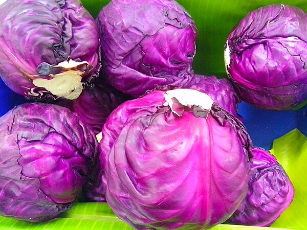 Краснокочанная капуста имеет фиолетово-красный цвет, который придает ей вещество цианидин, обладающее Р-витаминной активностью. Цианидин повышает упругость стенок кровеносных сосудов, нормализует проницаемость капилляров. По вкусовым и диетическим качествам краснокочанная капуста превосходит белокочанную, однако она имеет ограниченное распространение, в основном из-за того, что используется преимущественно в свежем виде в качестве салатов или гарниров ко вторым блюдам.