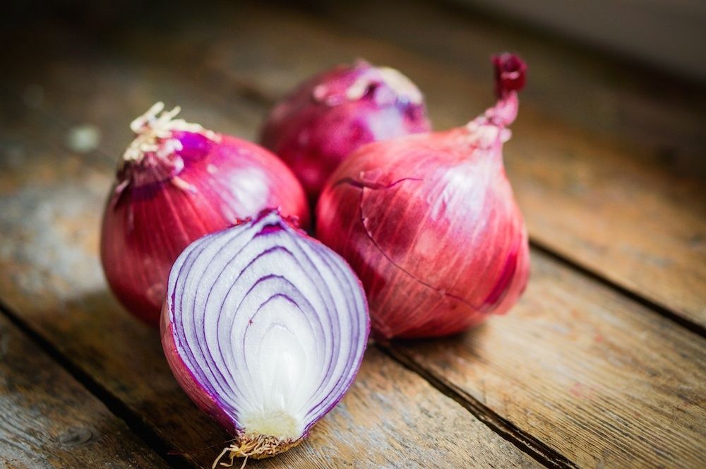 В составе красного лука содержится много полезных витаминов, например, В2, В1, С, А, В5, Р и В6. Также он включает в себя широкий спектр минералов: железа, калия, магния, меди, йода, цинка и кобальта.