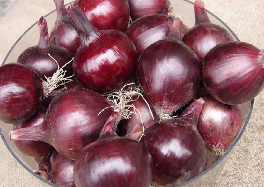 Это большие луковицы с глянцевой пурпурно-красной кожицей. Мякоть имеет розовато-фиолетовый оттенок и острый вкус.