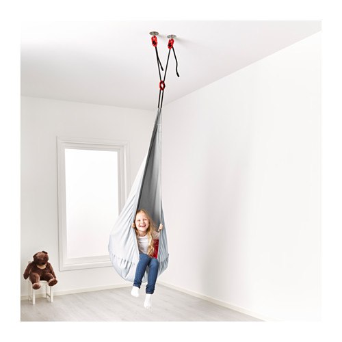 - Отличная замена качелям. В малогабаритном жилье вопрос с детскими качелями встает ребром. В данном случае вы убьете двух зайцев. Ваше чадо будет довольно и оригинальный элемент мебели в доме появится;