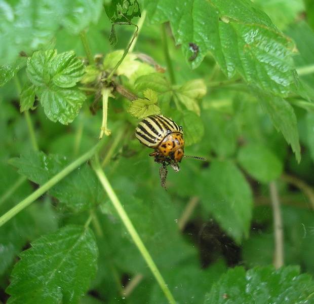 Отметим, что ущерб для пасленовых плантаций несут не только взрослые представители колонии, а и личинки – они полностью объедают зелень, а растения остаются только с жилками.