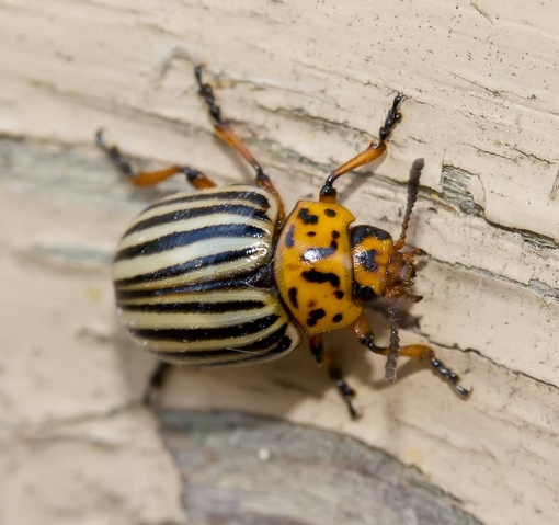 Картофельных жуков довольно легко идентифицировать. Взрослые жуки имеют овальную форму и длину около ½ дюйма.Они желто-оранжевого цвета с 10 узкими полосами, проходящими по длине их тела.