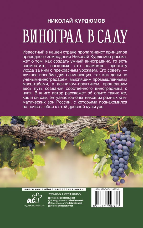 Н. И. Курдюмов Эта книга — коллекция умных и продуктивных способов и приемов, наработанных виноградарями всех климатических зон, включая Сибирь, Урал, Приморье, север Белоруссии, Подмосковье и Прибалкику. Подробнее… | Заказать книгу с доставкой | |