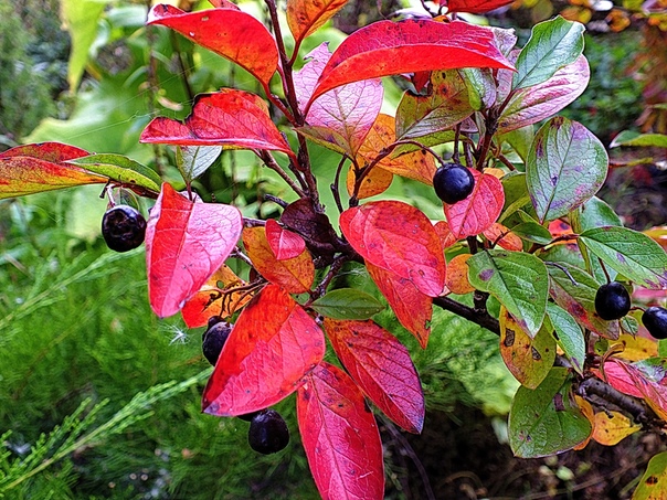 Листья при распускании бронзово-оранжевые, позднее золотисто – жёлтые, летом – зеленовато – жёлтые и осенью медно – оранжевые; цветки мелкие, карминово-розовые. в плоских соцветиях на концах побегов.
