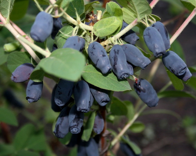 У съедобных сортов жимолости ягоды темно-синие, изменчивой формы.