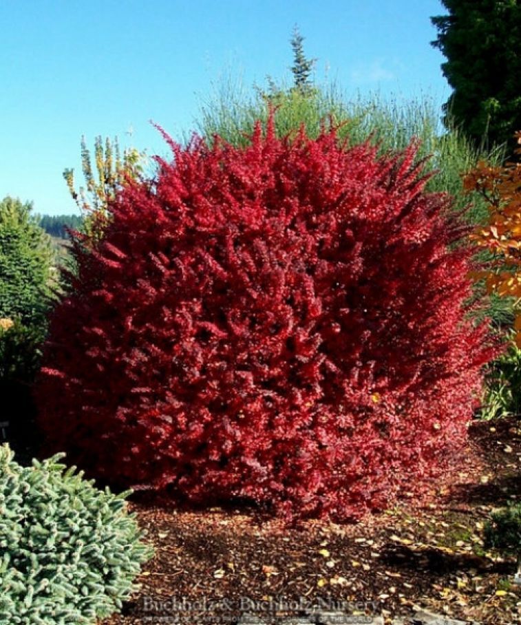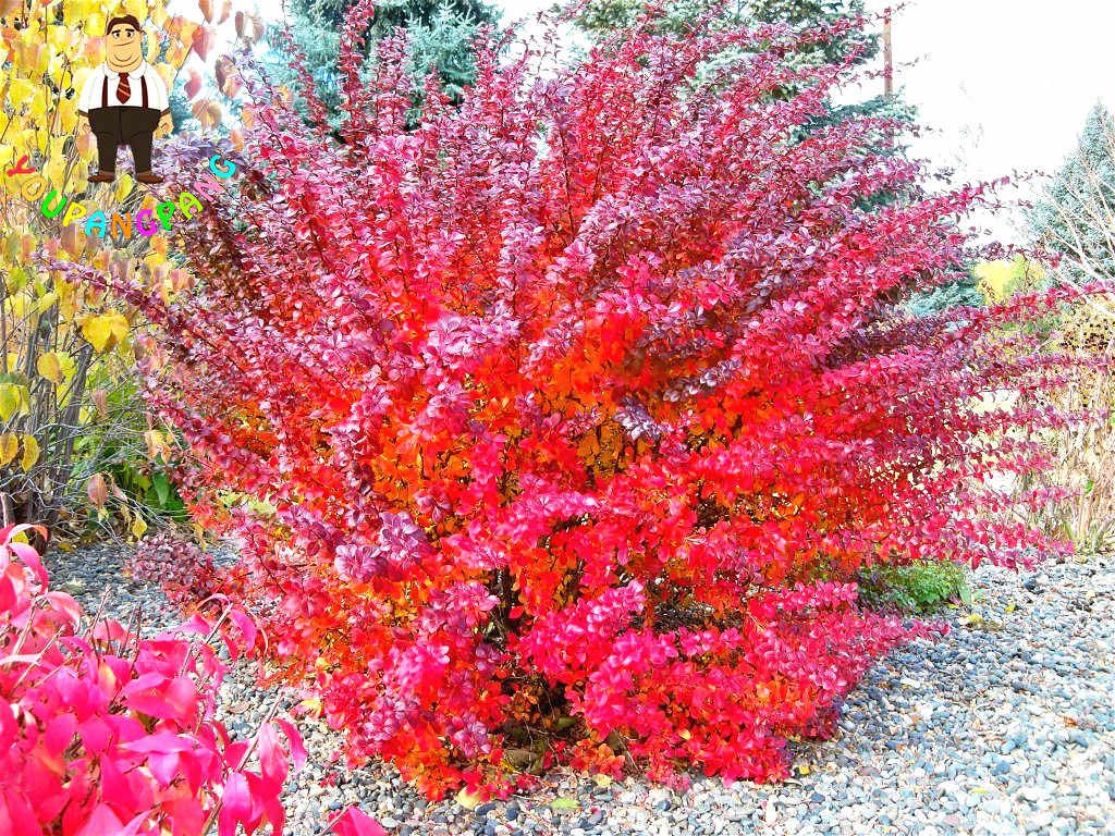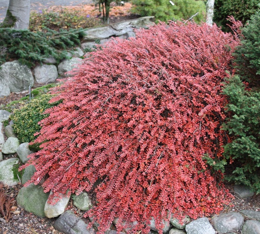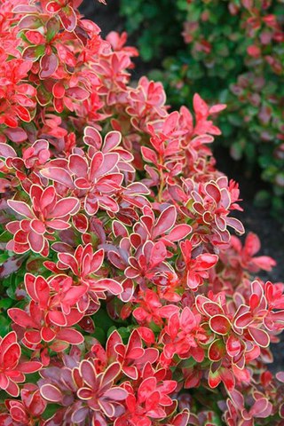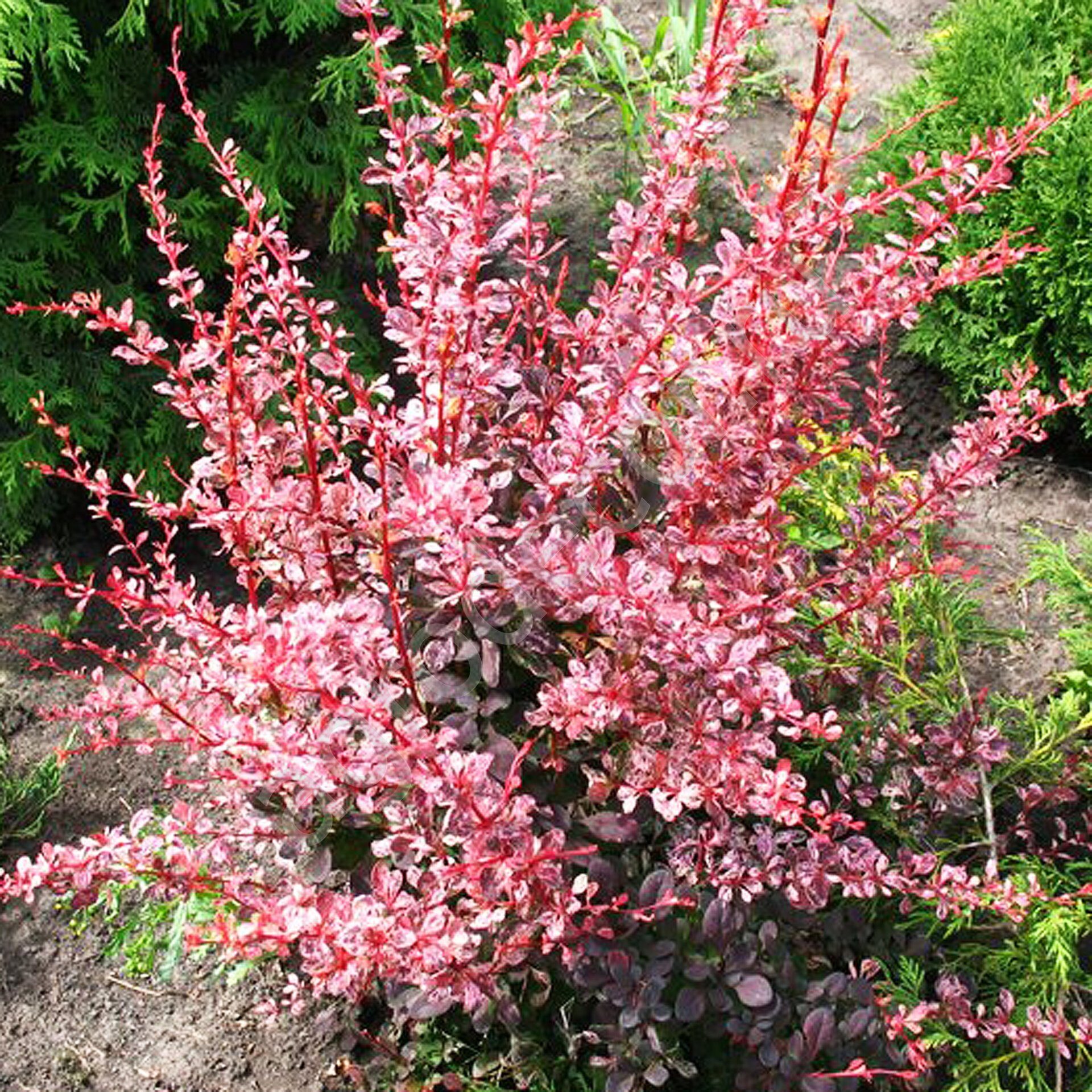 Барбарис Тунберга (Berberis thunbergii) — красивое растение с яркими стеблями и листвой, расцветающей желтыми, розовыми и красными цветами. Это растение имеет огромное количество видов. Его особенностью являются стебли, которые со временем меняют свой цвет с желтого на ярко-красный, пурпурно-красный и в результате становятся красновато-коричневыми. В зависимости от сезона побеги покрыты мелкими зелеными, золотистыми или оранжевыми листьями и хвоей.Высота кустов может достигать 3 м.