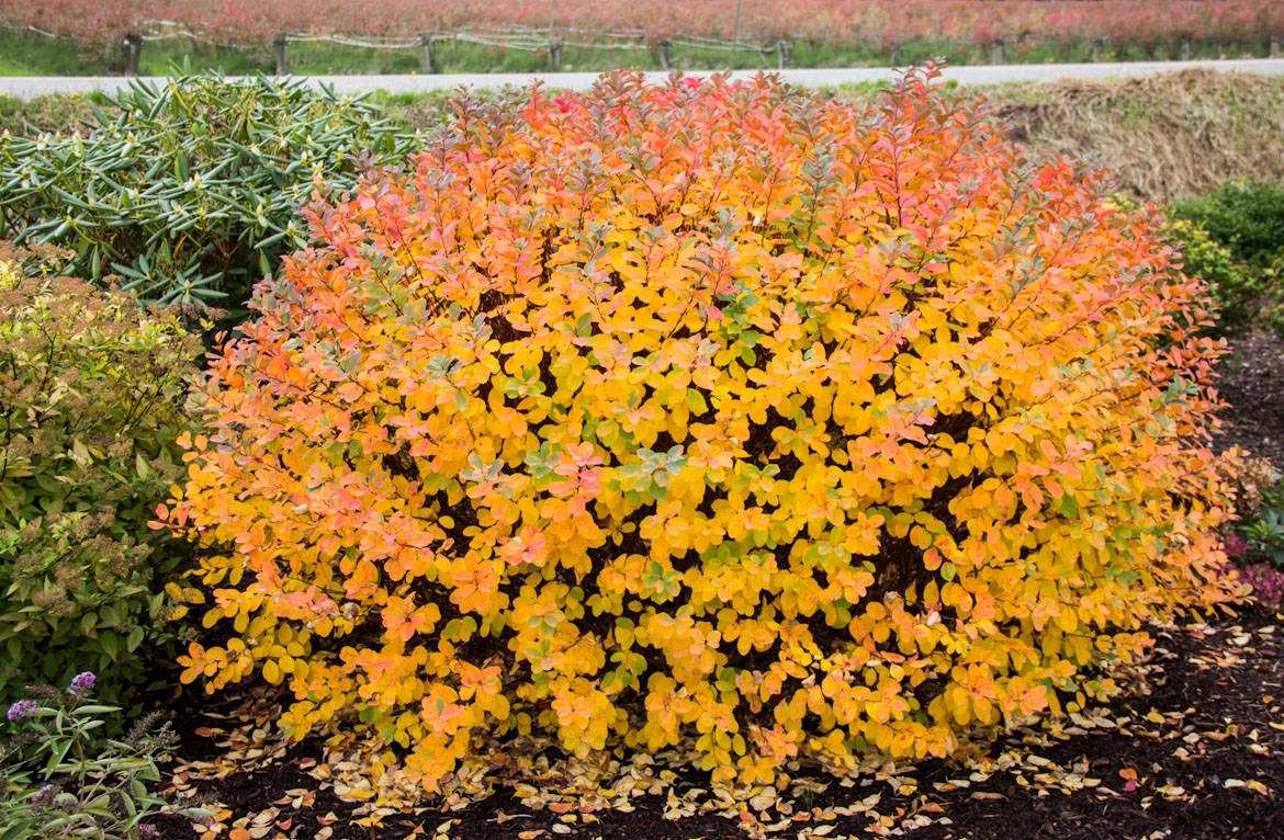 Выберите цвет: бронзово-красный, оранжево-золотой, золотисто-желтый или бордовый; Цветет этот кустарник