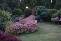 У кальмии бутоны похожи на китайские фонарики, края лепестков гофрированные. Любит влажную кислую почву и легкую полутень.