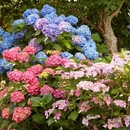 - Рододендроны — великолепно цветущие красивые кустарники, которые к тому же предпочитают быть укрытыми от полуденного солнца. Традиционно представителей рода подразделяют на рододендроны и азалии. Рододендроны, растущие в тени в среднем достигают в высоту 1,5 метра, цветут в мае, однако есть растения как 30 см, так и 6 м, цветущие как ранней весной, так и осенью, в августе. Окраска цветов разноообразна, за исключением голубой, листья овальные или продолговатые, зимующие. Для всех рододендронов характерно неглубокое залегание корней, поэтому почву под растениями мульчируют, в сухую погоду обильно поливают.