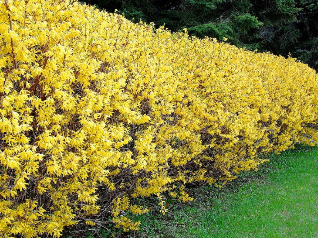 Если хочется чтобы кустарник зацвел быстрее, то стоит выбирать скороспелый хмель, быстрорастущий сорт Горец Ауберт или клематисы. Если нет времени на уход за кустарником, то идеальным вариантом станет чубушник, снежноягодник или смородина Шмидта.