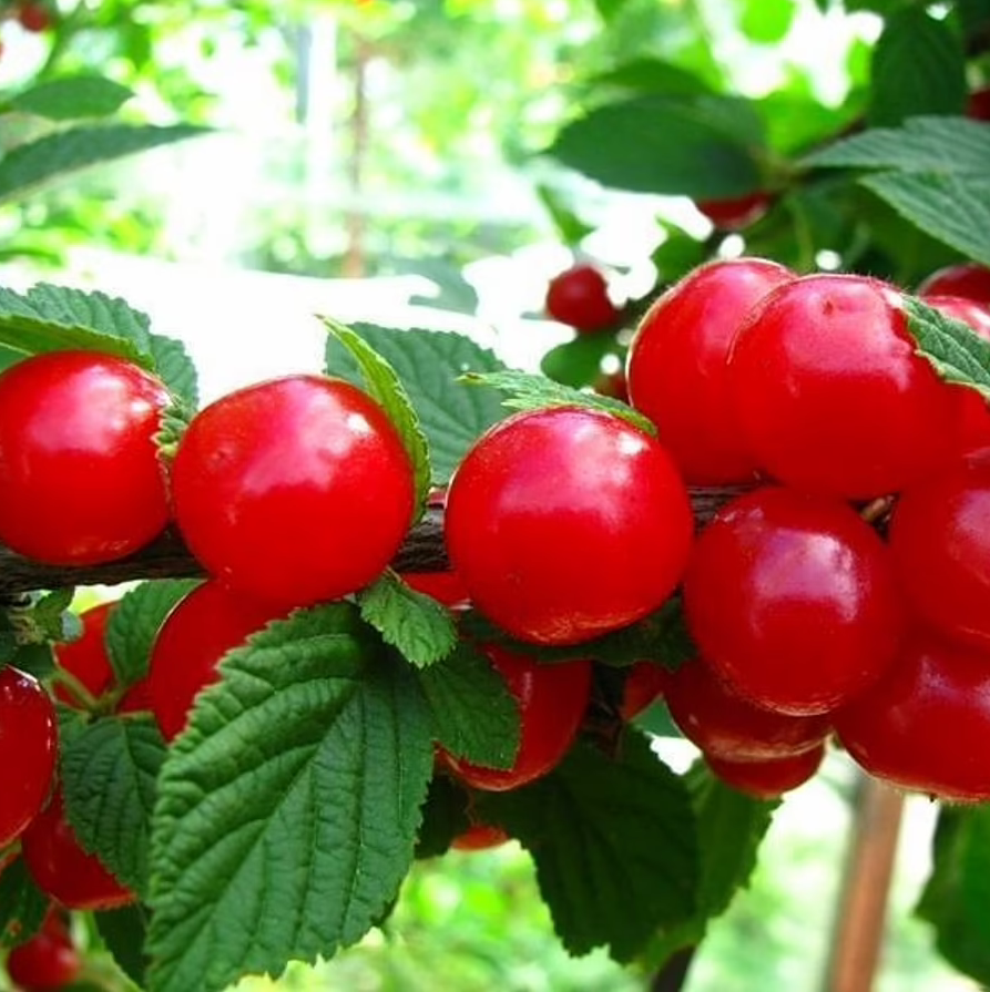 - Игрушка. Обладает прекрасными вкусовыми качествами — сладкие, мясистые и сочные сердцеобразные плоды были получены путем скрещивания с черешней. Крона рослая, растущая формой шара, а листочки несколько необычной для вишни формы — яйцеобразные. Начало урожайности приходится на июль. Основное отличие данного деревца — невероятно большое количество ягод. Взрослый куст при правильном уходе способен давать от 45 до 75 кг ягод!