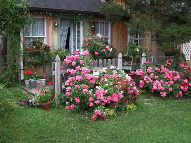 Многие сажают розы под окном, что позволяет не только наслаждаться чарующим ароматом, но и обеспечить прекрасный фон для цветущих красавиц. Кроме того стены дома дополнительно защищают растения от ветра, морозов или палящего солнца.