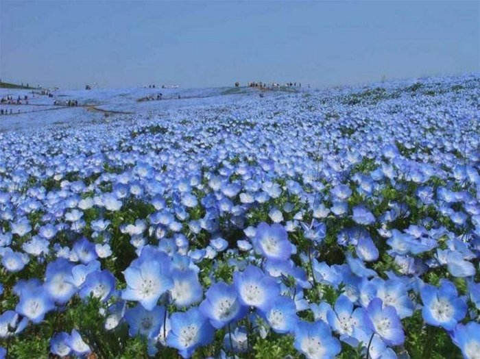 Цветы: Привлекательные нежные цветы ярко-синего цвета появляются в конце кивка. стебли. Цветы идеальные, собраны в кисти или соцветия и имеют ширину 2 дюйма. чашелистики, лепестки, рыльца и тычинки кратны пяти. Есть 10 семян. Цветы закрывать каждый вечер и снова открывать утром.