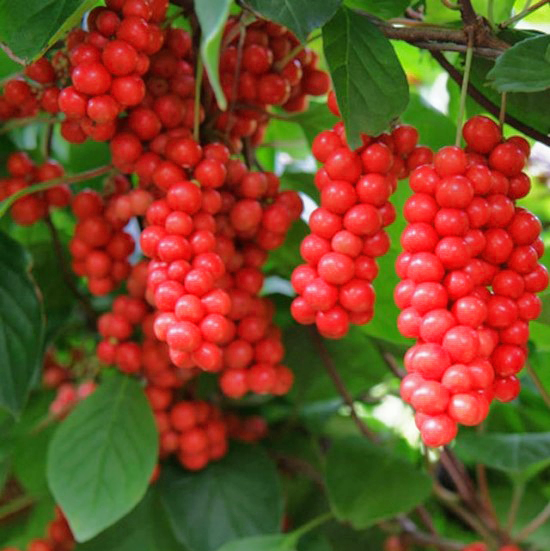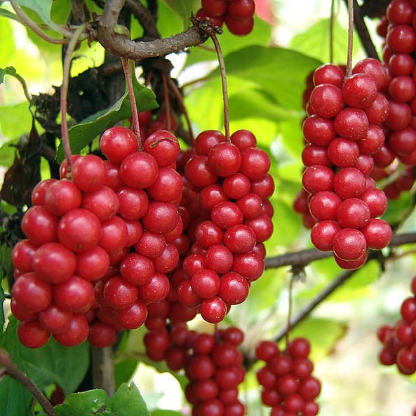 Осенью лиана выглядит еще эффектнее – ее листочки желтеют, а на побегах повисают красные грозди ягод. Причем, грозди внушительные, длиной до 10 см. Урожай созревает в сентябре. С одной лианы можно собрать до 4 кг ягод, но обильные урожая бывают не каждый год (3). Вкус у них очень необычный. Китайцы, к примеру, называют лимонник «ву-вей-тзи», что в переводе означает «плод с пятью вкусами». И это правда: кожица у лимонника кислая, мякоть сладкая, семена горькие и вяжут, а если ягоду разжевать целиком, то получается пряный, горьковато-жгучий и одновременно солоноватый вкус.